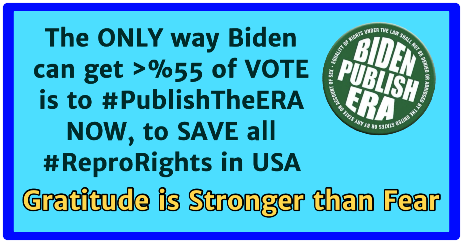 President Biden continues to refuse to publish the ERA to stop this “Handmaids Hell,” the multitude of draconian fascist anti-abortion state laws. As Biden did in the 2022 mid-terms, he is still using our FEAR to garner votes and to fundraise for Democrats — despite KNOWING the absolute chaos, devastation, grief, trauma, and death that will be caused without the ERA.